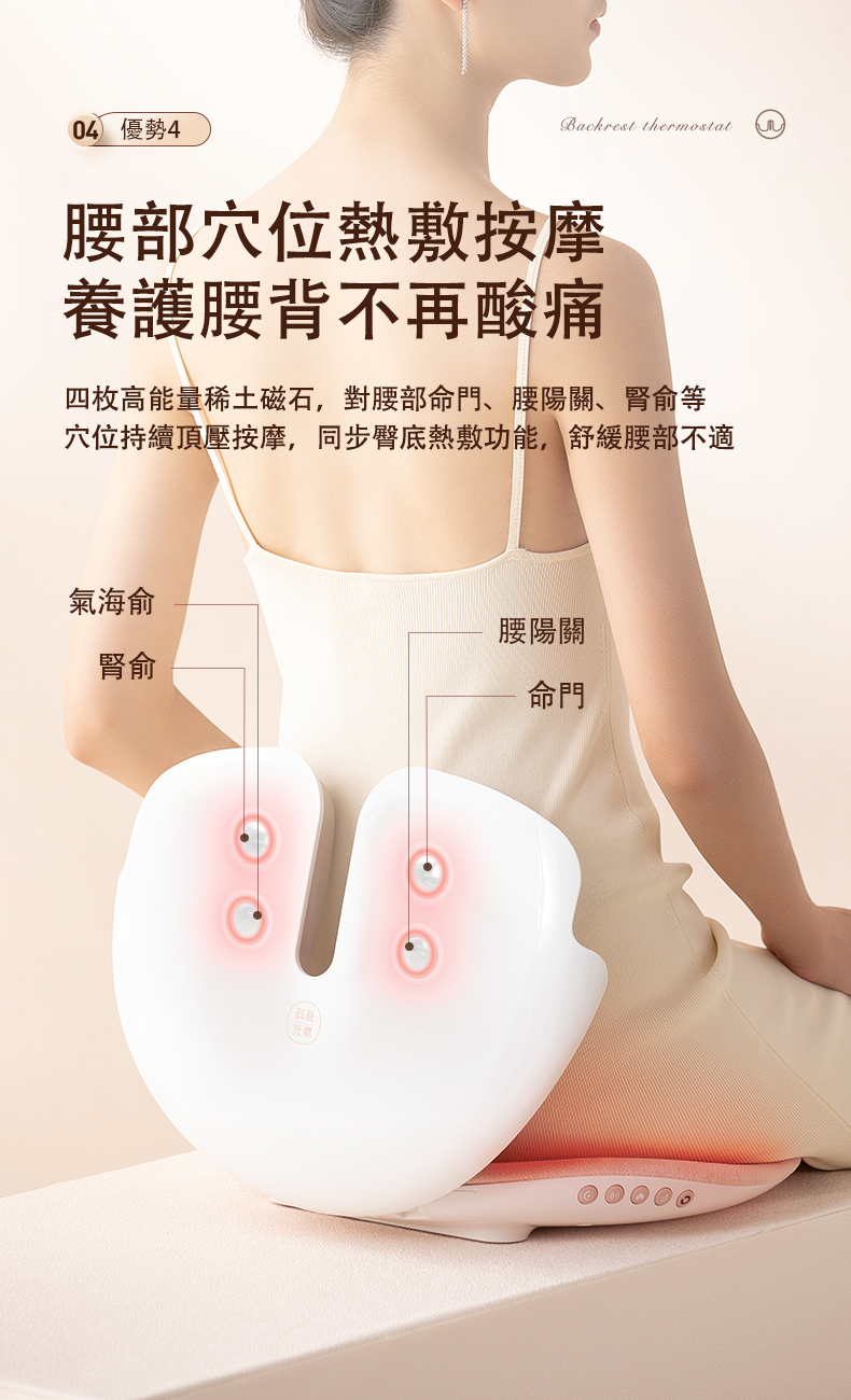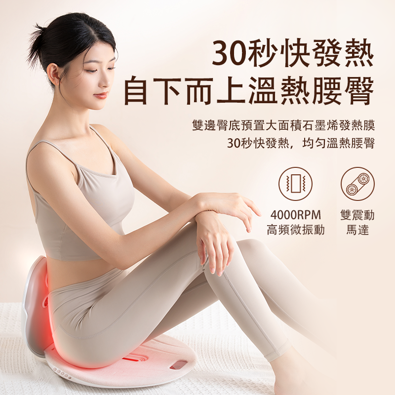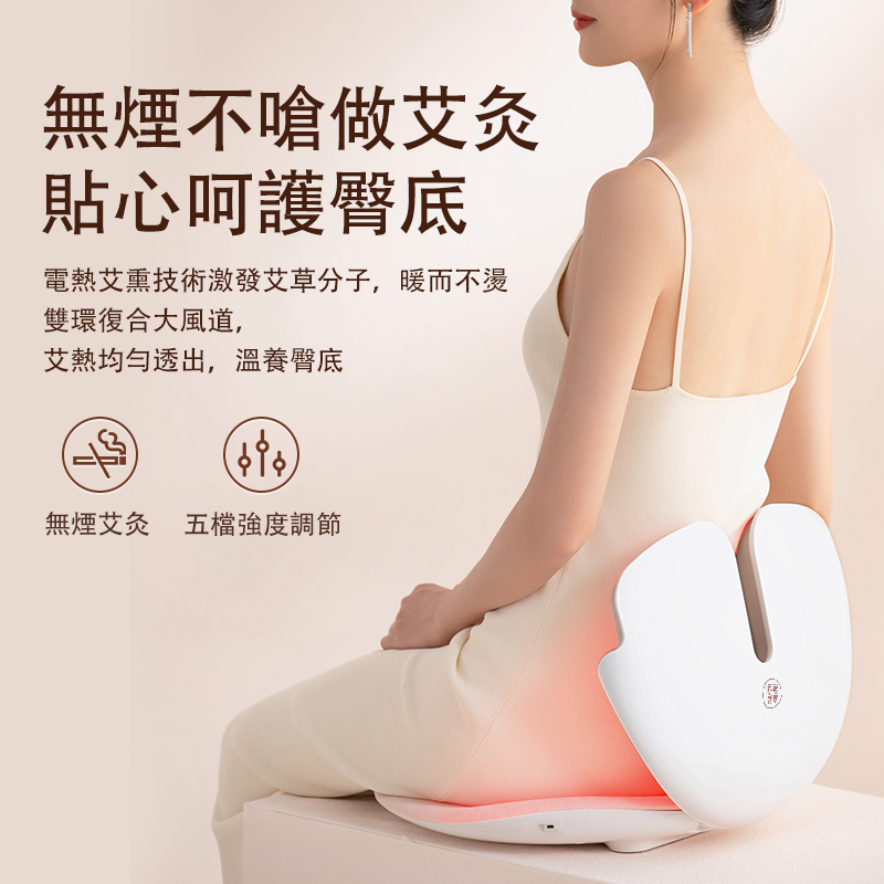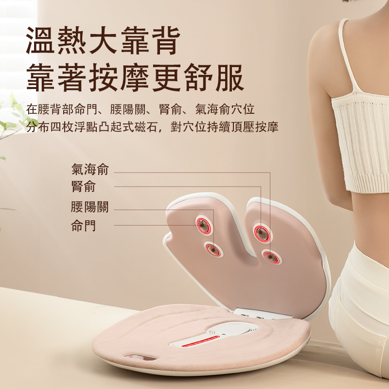 》無烟艾灸、加熱、磁石、紅光 、震動等按摩腰部和臀部模式