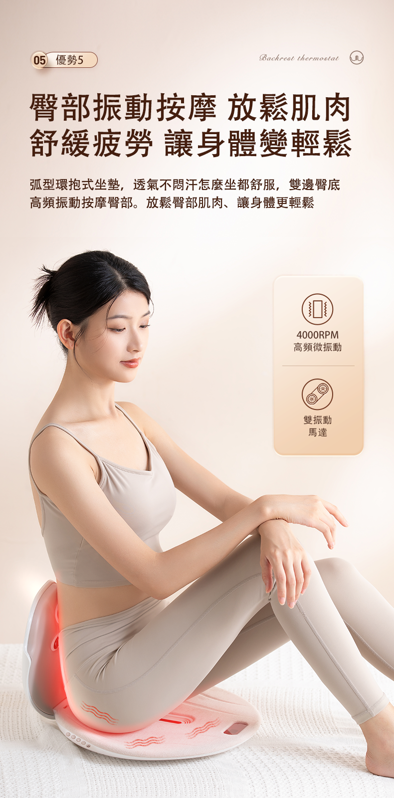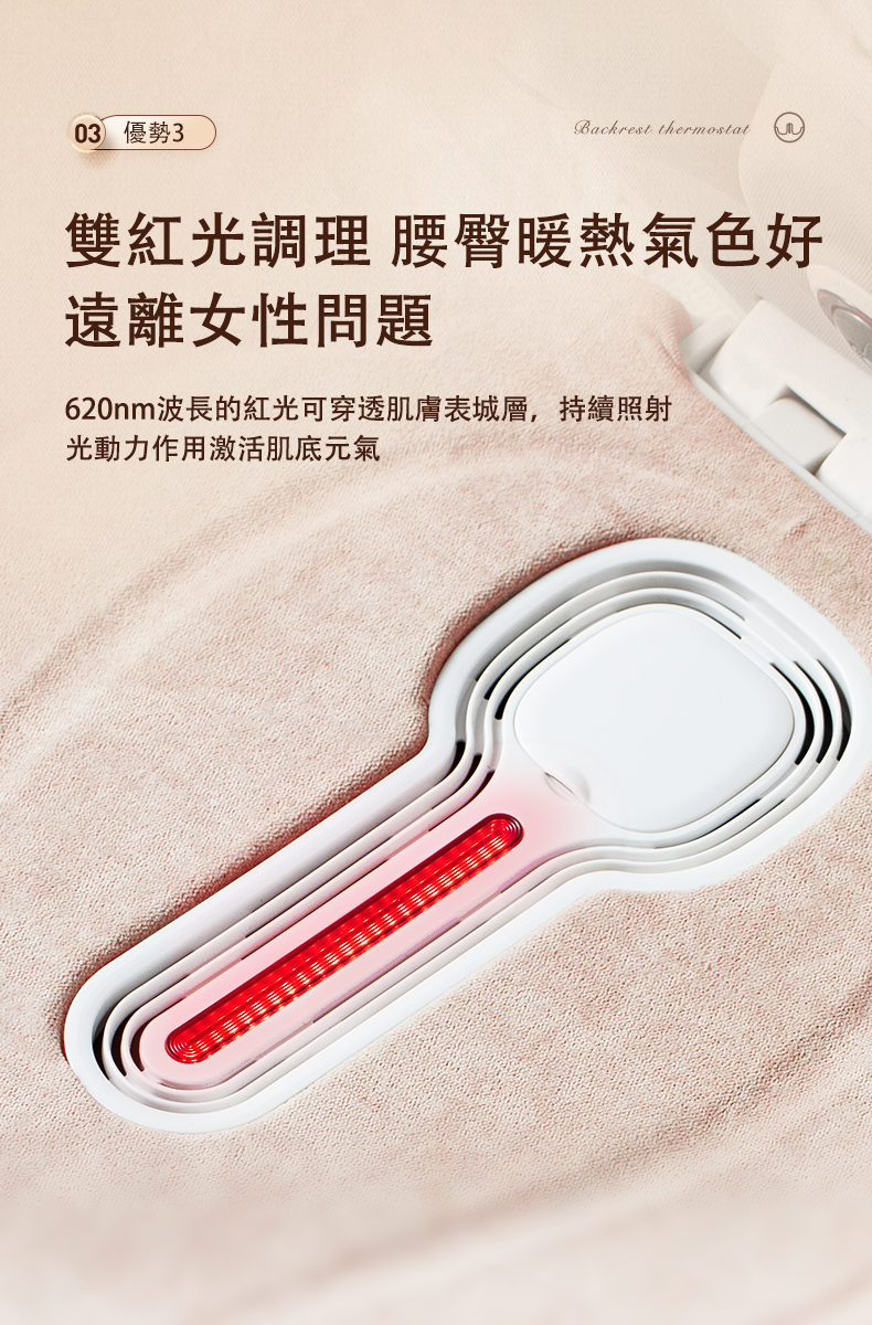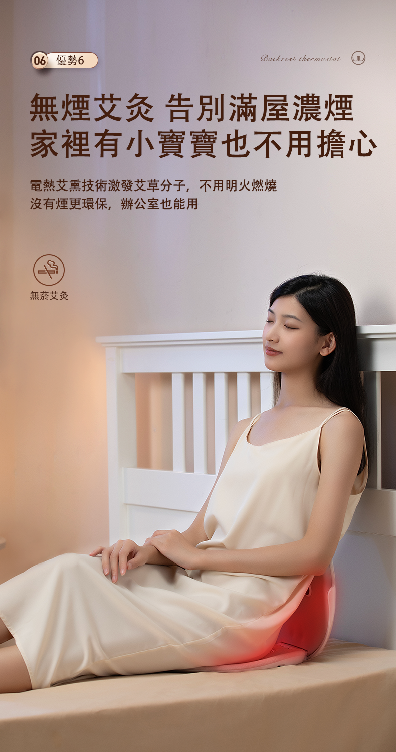 》無烟艾灸、加熱、磁石、紅光 、震動等按摩腰部和臀部模式