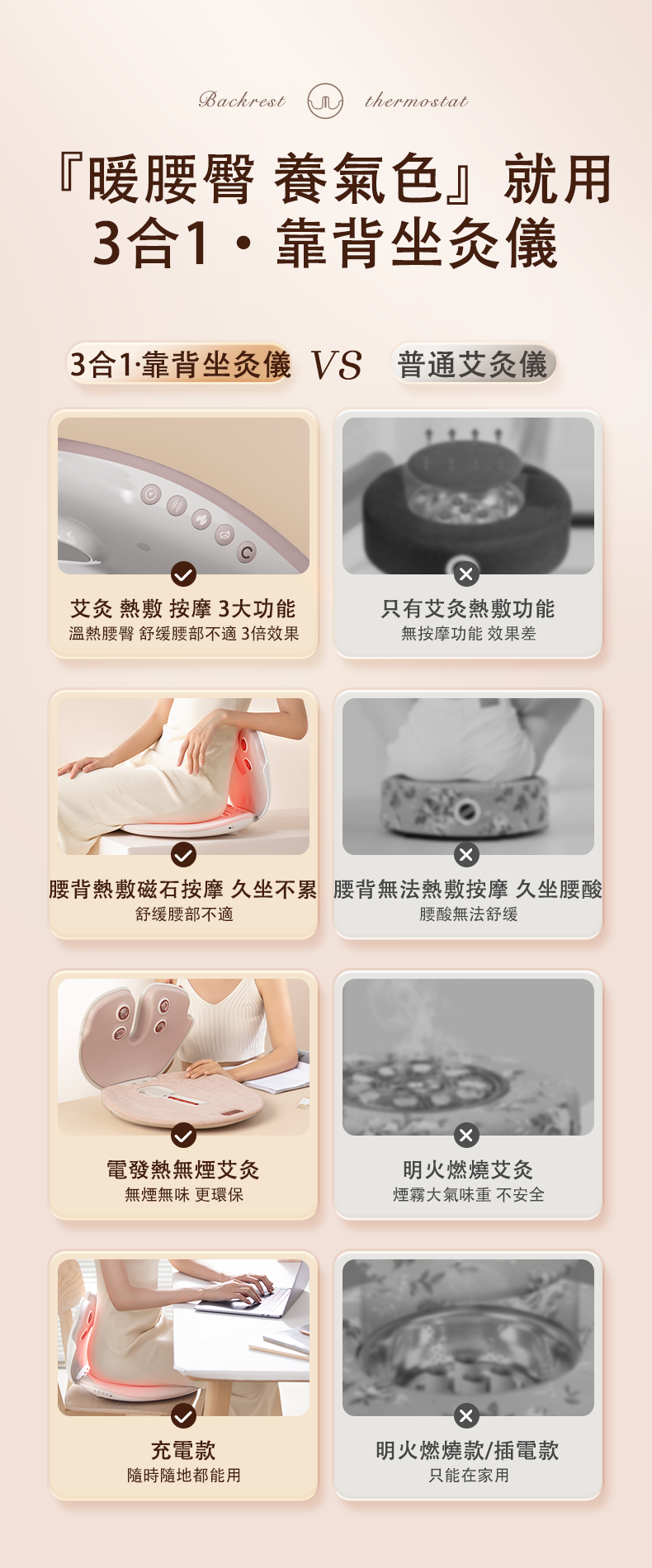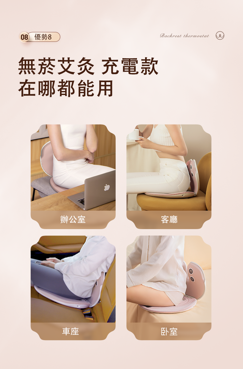 》一機多用: 集合艾灸、按摩、 磁療等功能同時矯正人體坐姿